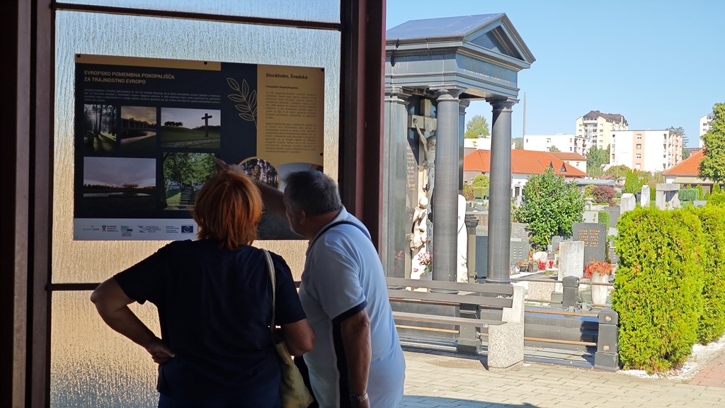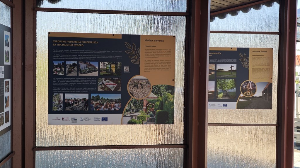 The exhibition invites visitors to view cemeteries not only as spaces of remembrance but also as active contributors to sustainability. It is on display from September 2025, in front of the chapel at Pobrežje Cemetery.